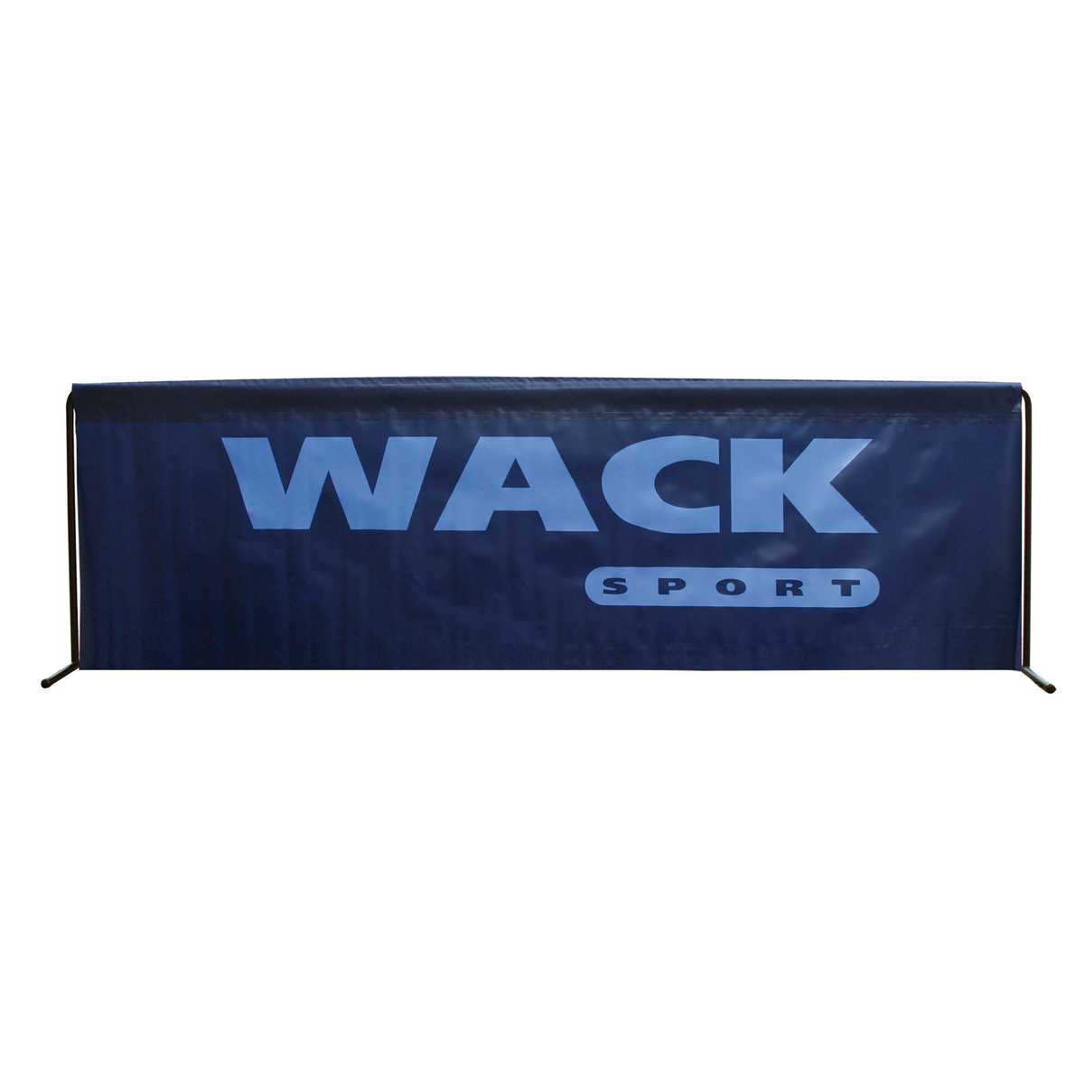 Elément de 2,33 m de long et 70 cm de haut. Livré en 4 éléments à monter (2 pieds et 2 tiges de 1,16 m à emboîter). Cadre acier, tiges verticales démontables. Toile polyester vert foncé ou bleu avec inscription publicitaire Wack sport ou Tibhar d'un côté (selon disponibilité)