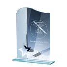 Trophée en verre 21 cm.Sans gravure. Pour la gravure , vous devez rajouter dans votre panier la référence 0810001000 (gravure laser , uniquement texte) au prix de 5.00 euro ou la reference 0810002000 (gravure laser logo et texte) au prix de 9.00 euro.