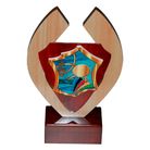 Trophée en bois 21 cm.Sans gravure. Pour la gravure , vous devez rajouter dans votre panier la référence 0810001000 (gravure laser , uniquement texte) au prix de 5.00 euro ou la reference 0810002000 (gravure laser logo et texte) au prix de 9.00 euro.