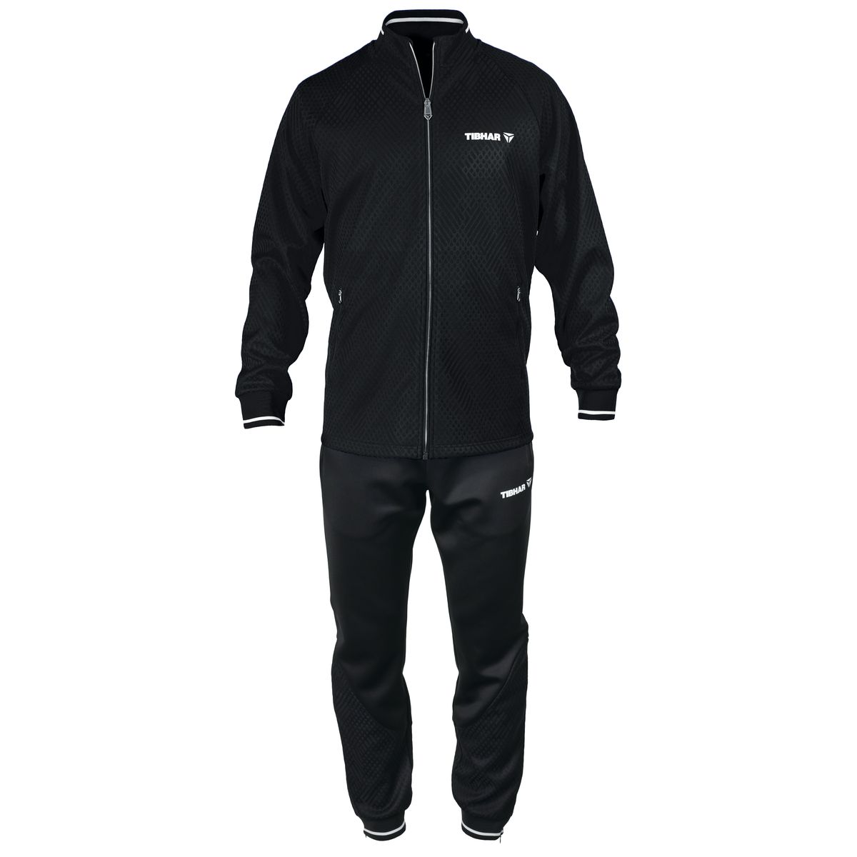Matière fonctionnelle souple de qualité supérieure. Confort optimal. Bande d'absorption de l'humidité intégrée au niveau du col. Deux poches latérales sur la veste et le pantalon avec fermeture éclair. Taille élastique avec cordon. Ouverture zippée en bas du pantalon. 100 pour cent polyester.