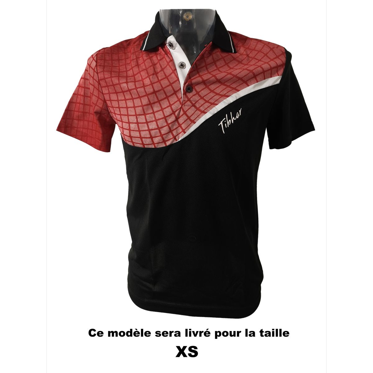 Selon la taille commandée, le modèle livré est différent: chemisette noir-vert pour la tailles XXS / S / L / XL chemisette curve noir-rouge pour la taille XS chemisette verte pour la taille M chemisette marine roi pour la taille XXL