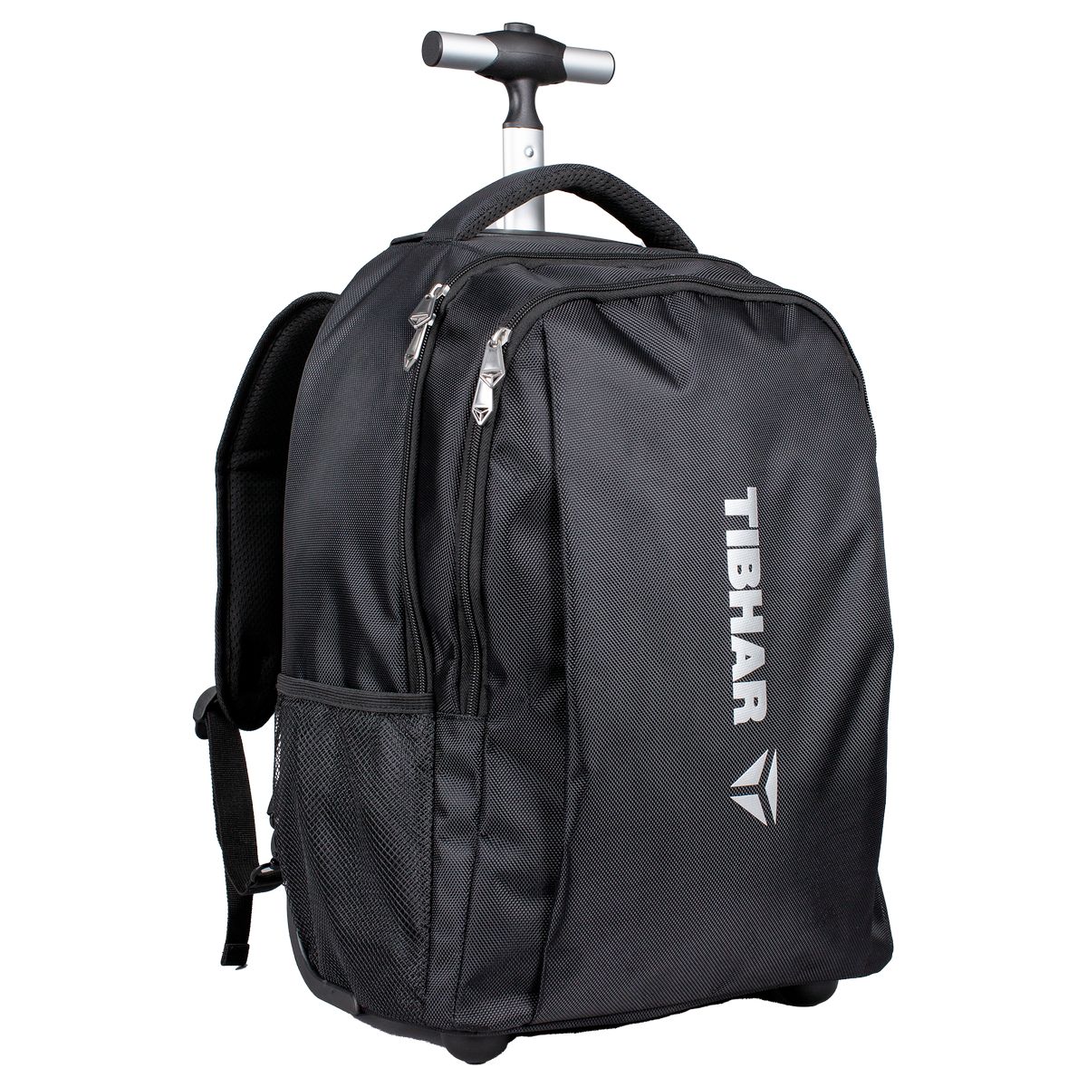 Sac à dos trolley avec roulettes et manche téléscopique. Grand compartiment principal. Petit compartiment additionnel sur le côté. Fermeture éclair aller-retour. Deux pochettes latérales pour transporter des gourdes. 31 x 28 x 50 cm.