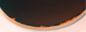 | Il est possible que tes revêtements de qualité se détachent en petites pièces, près du bord. Il ne s’agit pas d’un défaut ! Cela provient du contact de cette partie avec la table, la housse... Et comme les revêtements de haut de gamme sont très “élastiques”, ton revêtement s’effrite. Cet effritement se limite au pourtour de la raquette, et n’affecte absolument pas la qualité de ton jeu.