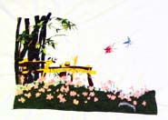 Ces broderies sont achetées directement aux artistes, dans un petit village rural du nord du Vietnam (Van Tho) et sont fabriquées par les femmes du village. La broderie a déjà une longue histoire au Vietnam et ce savoir-faire se transmet dans les familles de générations en générations.