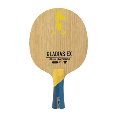 Le GLADIAS EX est un bois offensif haut de gamme signé VICTAS. La combinaison exceptionnelle d'une vitesse élevée et d'une excellente sensation de toucher est obtenue grâce à la fibre élastique de carbone EX, située directement sous le pli extérieur. Cette structure innovante en carbone non tissé offre au joueur un incroyable toucher de balle sans sacrifier la puissance et la stabilité. Grâce à sa structure 5+2 et à ses placages harmonieusement équilibrés, le GLADIAS EX est un bois exceptionnel qui répond à tous les critères des joueurs offensifs et polyvalents. Son design élégant et sa finition de haute de gamme complètent parfaitement l'ensemble du GLADIAS EX.
