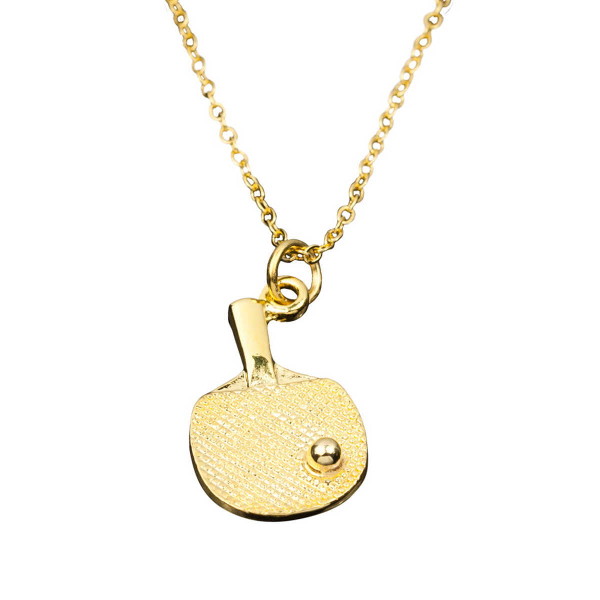 Collier fantaisie avec grande raquette et balle. Chaîne de 46cm avec fermeture de sécurité. Plaquée rhodium en guise de protection contre l'oxydation et les allergies. Le bijou mesure ENVIRON 1,5cm de diamètre et ENVIRON 2,2cm en hauteur.