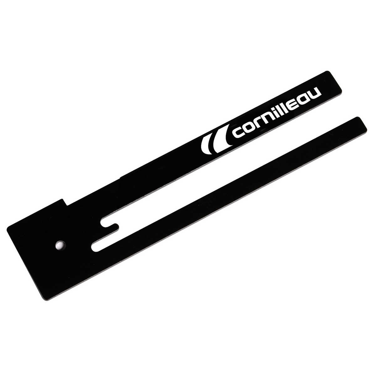 En métal. Permet de mesurer la hauteur, la bonne tension du filet et l'épaisseur maximum des revêtements.