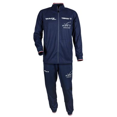 Survêtement FRANCE VETERAN . Deux poches latérales sur la veste et le pantalon avec fermeture éclair. Taille élastique avec cordon. Ouverture zippée en bas du pantalon. 100 pour cent polyester.